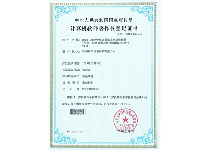• 10軟件產品登記證書——和緯信電HSCC-2型排流控制器軟件V1.2